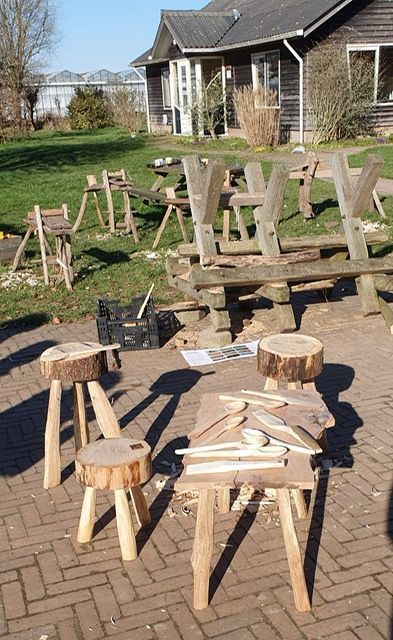 Er is ook wat meer tijd voor andere activiteiten en daar vertel ik jullie graag over. Er is een serie schilderlessen gegeven door Ans aan een groepje van 5 deelnemers. Zij hebben op toegankelijke wijze een portret geschilderd en vooral veel geleerd over 'kijken'. Verder heeft de hele groep een tweedaagse cursus hout bewerken gevolgd. Deze cursus werd gegeven door de mannen van VersHout uit Almen, en heeft mooie krukjes en lepels opgeleverd, maar was vooral heel erg leuk om te doen. En dan krijgen we binnenkort nog een les Do-In Yoga van Monique.